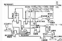 由吸收剂制备、吸收塔、脱硫灰再循环、除尘 石灰 石膏法脱硫工艺流程 器及控制系统等部分组成。该工艺一般采用干态的消石灰粉作为吸收剂,也可采用其它对二氧化硫有吸收反应能力的干粉或浆液作为吸收剂。 锅炉排出的未经处理的烟气从吸收塔(即流化床)底部进入。吸收塔底部为一个文丘里装置,烟气流经文丘里管后速度加快,并在此与很细的吸收剂粉末互相混合,颗粒之间、气体与颗粒之间剧烈摩擦,形成流化床,在喷入均匀水雾降低烟温的条件下,吸收剂与烟气中的二氧化硫反应生成CaSO3 和CaSO4。脱硫后携带大量固体颗粒的烟气从吸收塔顶部排出,进入再循环除尘器,被分离出来的颗粒经中间灰仓返回吸收塔,由于固体颗粒反复循环达百次之多,故吸收剂利用率较高。 此工艺所产生的副产物呈干粉状,其化学成分与喷雾干燥法脱硫工艺类似,主要由飞灰、CaSO3、CaSO4和未反应完的吸收剂Ca(OH)2等组成,适合作废矿井回填、道路基础等。 当燃煤含硫量为2%左右,钙硫比不大于1.3时,脱硫率可达90%以上,排烟温度约70℃。此工艺在国外目前应用在10~20万千瓦等级机组。由于其占地面积少,投资较省,尤其适合于老机组烟气脱硫。
